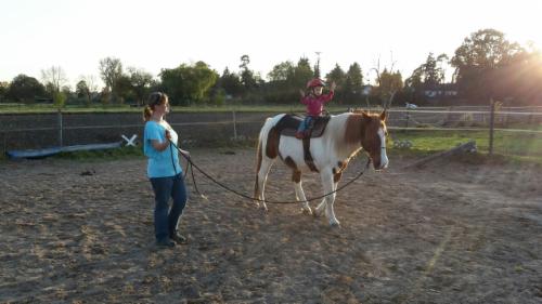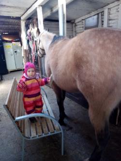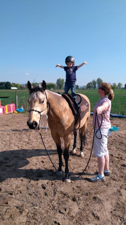 Ab einem Alter von 2 Jahren (bitte in Begleitung der Eltern) dürfen Kinder bei mir reiten lernen, erstmal nur mit Volitgurt (2 Griffe zum festhalten) lernen die Kinder Balancegefühl und Bewegung auf dem Pferderücken. Der Blick für Gleichgewicht wird geschult.